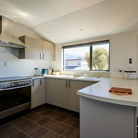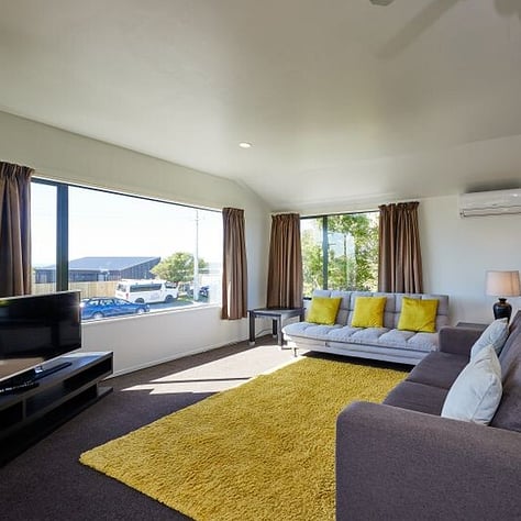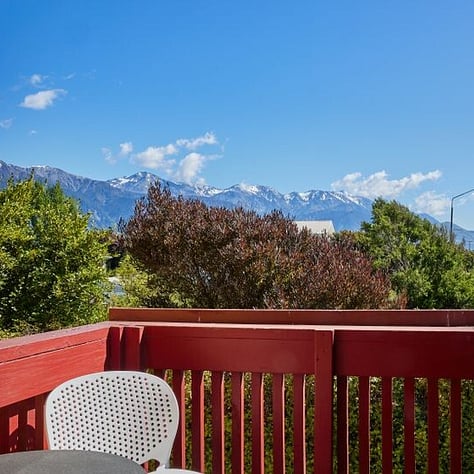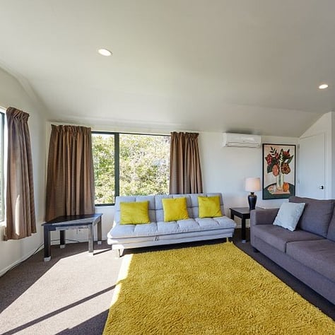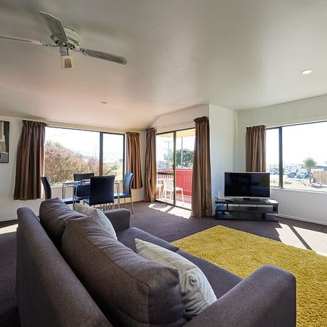 Upstairs you’ll find a spacious and comfortable open-plan living area. With a Smart TV, heat pump and fans, this is the perfect spot to gather and unwind after a busy day of adventuring. Step out onto the balcony and take in the snow-capped peaks and sea breeze!